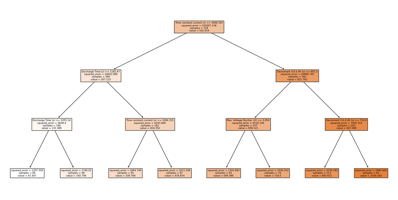 feature_names=x.columns) # Nomes das variáveis de entrada